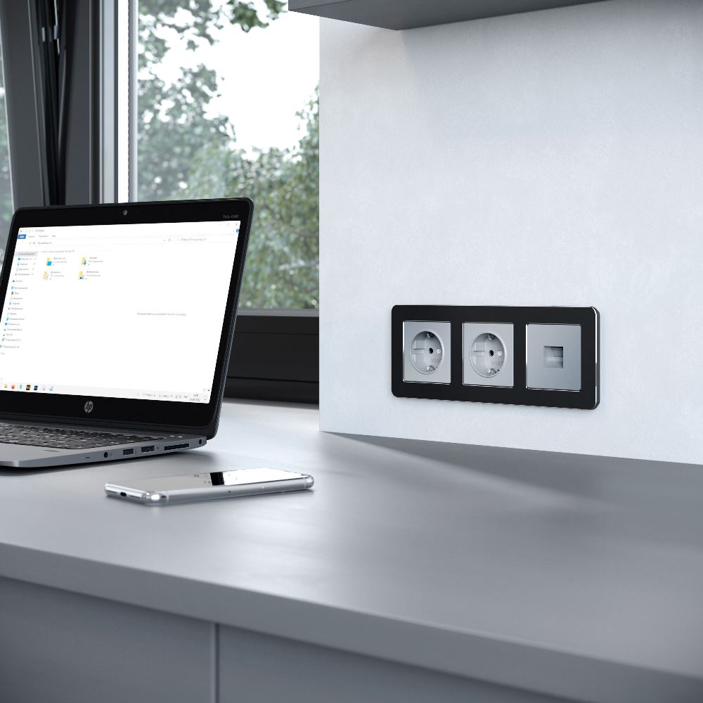 Рамка из металла Werkel Platinum на 3 поста Черный алюминий W0032608