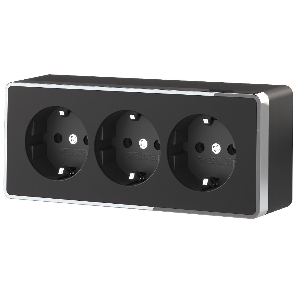 Розетка накладная тройная Werkel Gallant с заземлением и шторками Черный / Хром W5073135