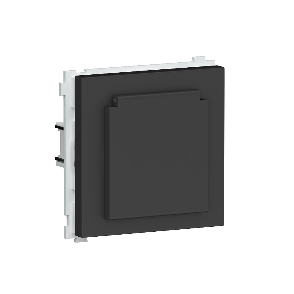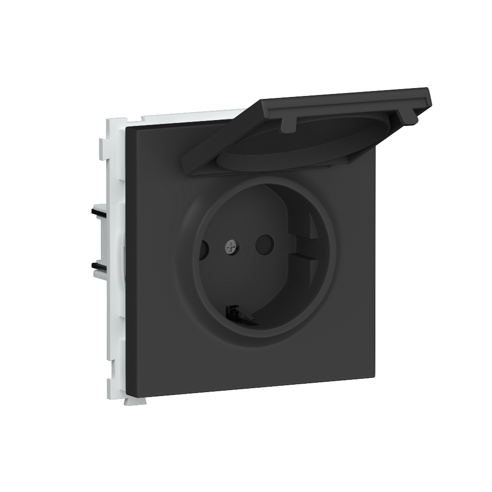 Розетка встраиваемая Donel R98 Schuko с крышкой и заземлением на винтах Черный матовый DA18800-DA45428