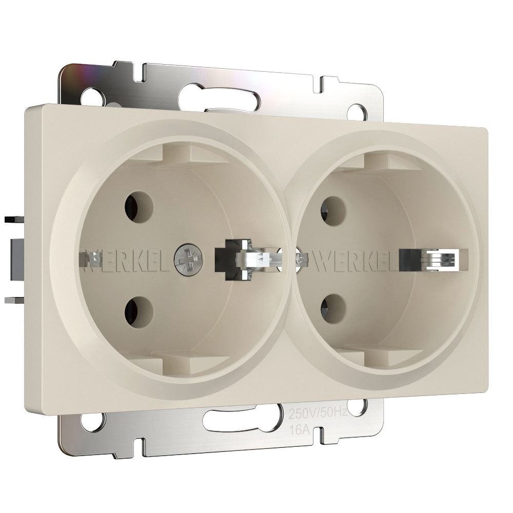Розетка встраиваемая двойная Werkel с заземлением Айвори матовый W1172062